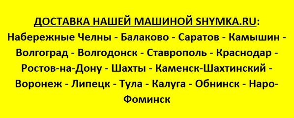 Маршрут доставки: Набережные Челны - Балаково - Саратов - Камышин - Волгоград - Волгодонск - Ставрополь - Краснодар - Ростов-на-Дону - Шахты - Каменск-Шахтинский - Воронеж - Липецк - Тула - Калуга - Обнинск - Наро-Фоминск, а также во все сопутствующие населенные пункты!!!